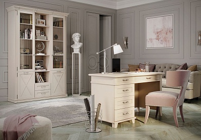 Шкаф Дольче со стеклянными полками (4 шт.) и полкой ЛДСП Кашемир серый