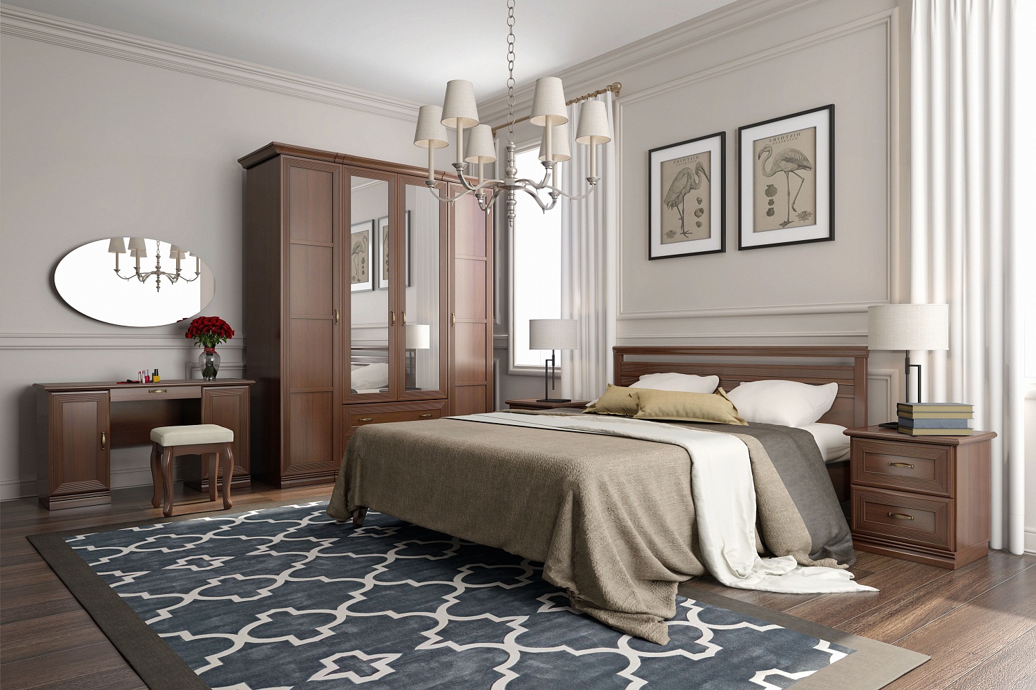Обратились к консультанту магазина с просьбой порекомендовать оптимальный вариант классического комплекта мебели для спальни в новом доме. После предоставленных на выбор вариантов остановились на этом. Дизайн радует глаз, сборка выполнена из отличных комплектующих и качественно. Комплект отлично смотрится и прослужит долго без сомнения. Доставили в срок и в целости, спасибо.