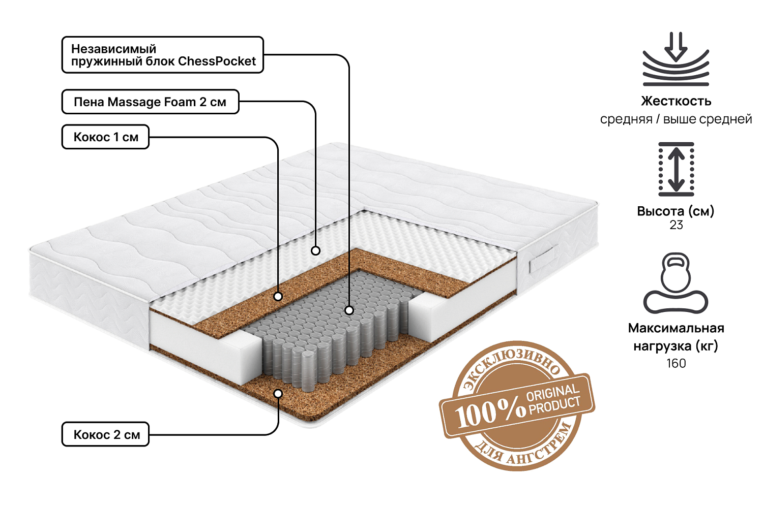 - Матрас с независимым блоком пружин ChessPoket;