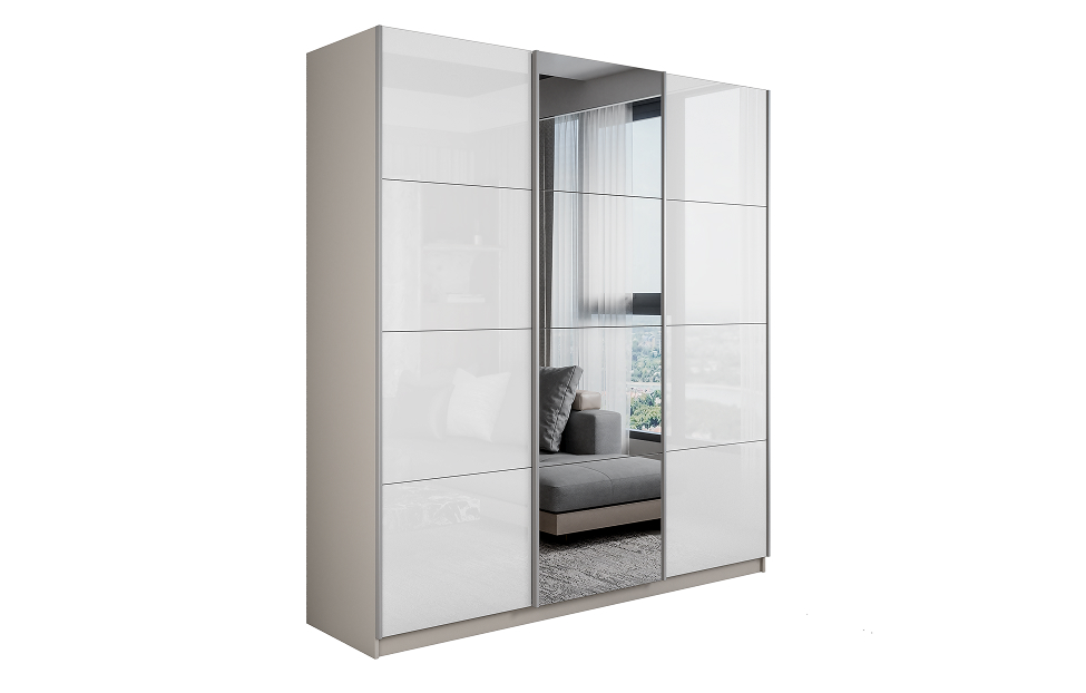 Цена на Шкаф-купе Lux 210х230х57 кашемир Белый глянец/Зеркало/Белый глянец от производителя , оплатите любым удобным для вас способом!