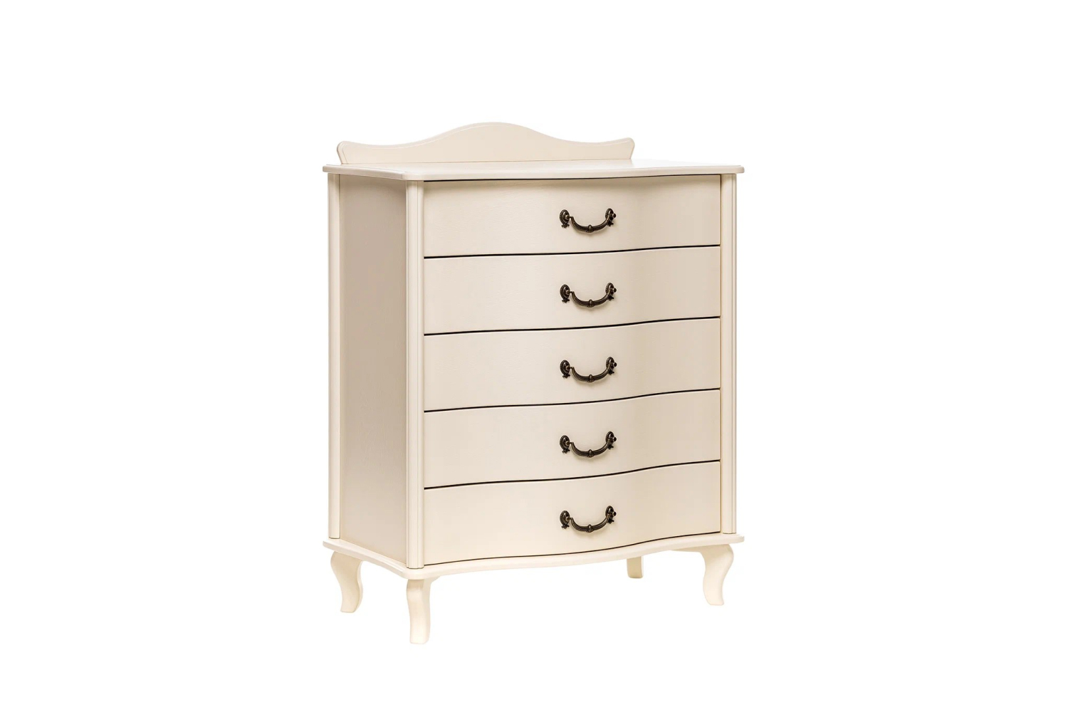 Классический комод Джульетта - воплощение вневременной элегантности и безупречного вкуса. Пять удобных выдвижных ящиков позволяют наиболее функционально использовать пространство и объем комода. Материалы, из которых выполнен комод, обеспечивают высочайшую надежность. Модель, вдохновленная лучшими традициями европейской мебели, станет изысканным акцентом в вашем интерьере. Плавные линии резных ножек-кабриолей придают комоду утонченную грацию и воздушность.